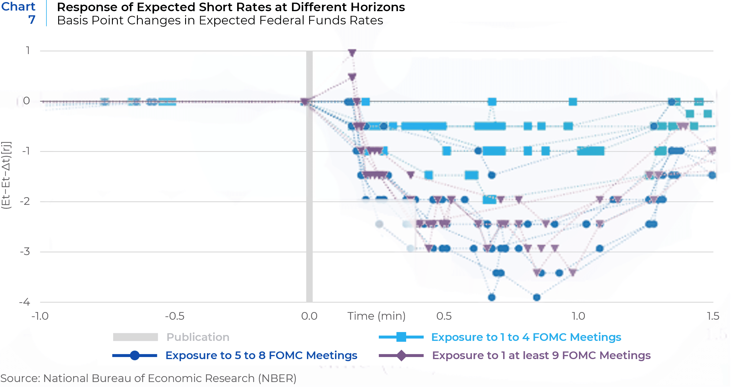 Unlike the prior studies, which are across long periods of time and across global markets, isolating a recent episode in the U.S. market allowed the researchers to gauge the changes in market expectations in a meaningfully more granular fashion than was possible for the previous studies. Uniquely, it allowed a disaggregation of changes in market expectations over different future time horizons. As the study elaborates,